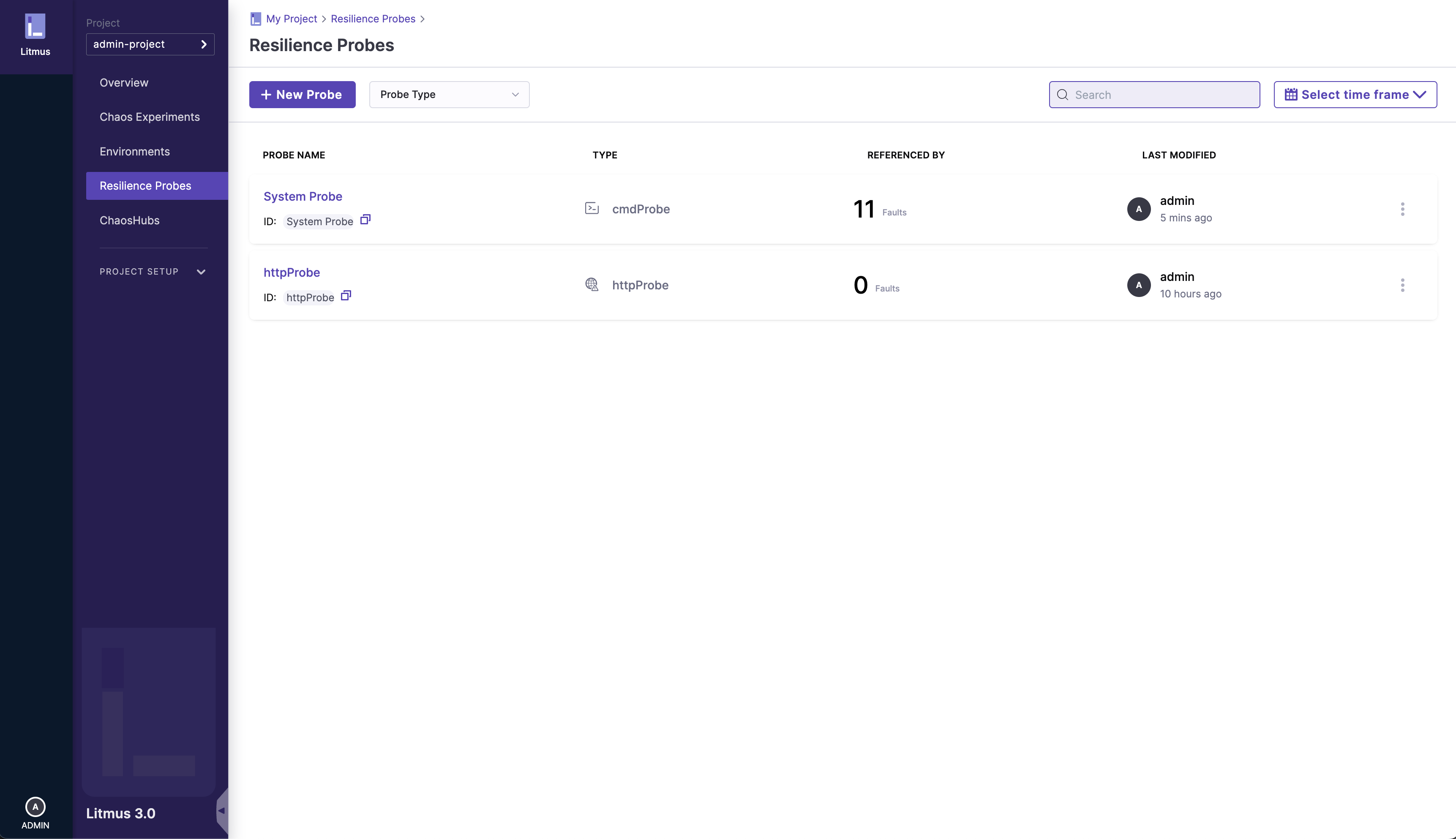 In the Resilience Probes page, go to the specific probe you wish to view the details of: